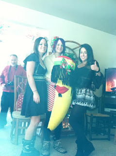 Basically just dressed up like a candy cane. And of course put a bow on our banana, Josep.